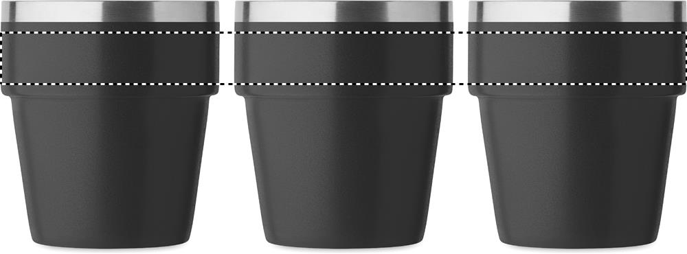 Doppelwandiger Becher aus recyceltem Edelstahl (90% recycelter Edelstahl und 10% Edelstahl). Stapelbar. Füllmenge: 250 ml.