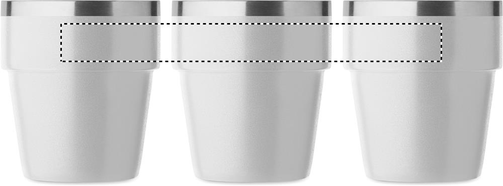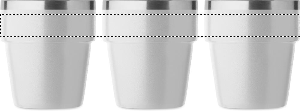 Doppelwandiger Becher aus recyceltem Edelstahl (90% recycelter Edelstahl und 10% Edelstahl). Stapelbar. Füllmenge: 250 ml.
