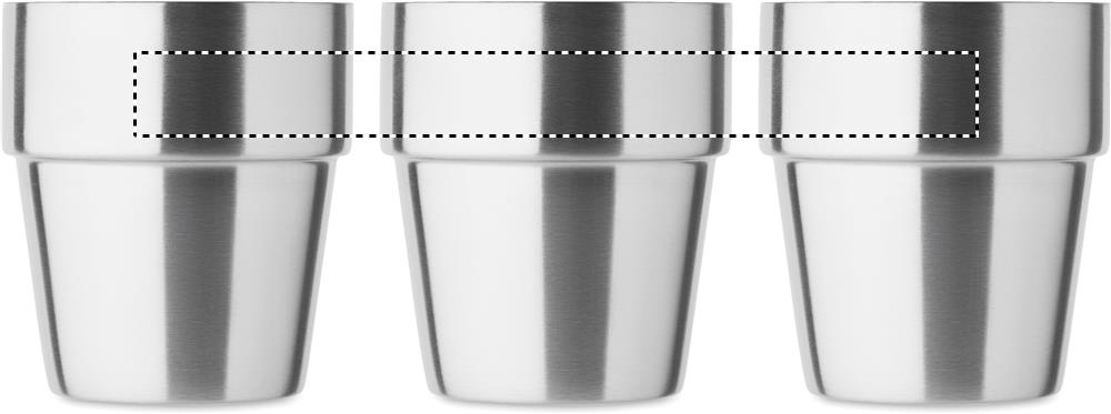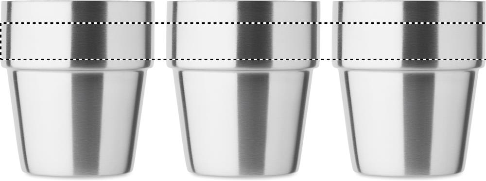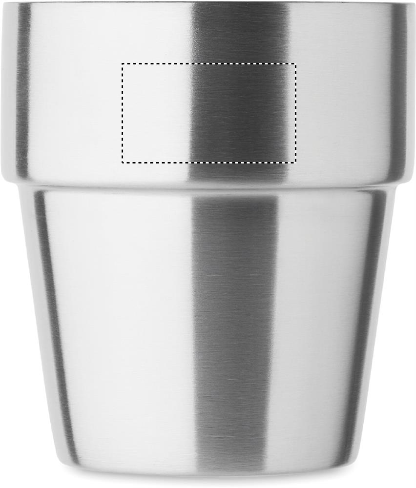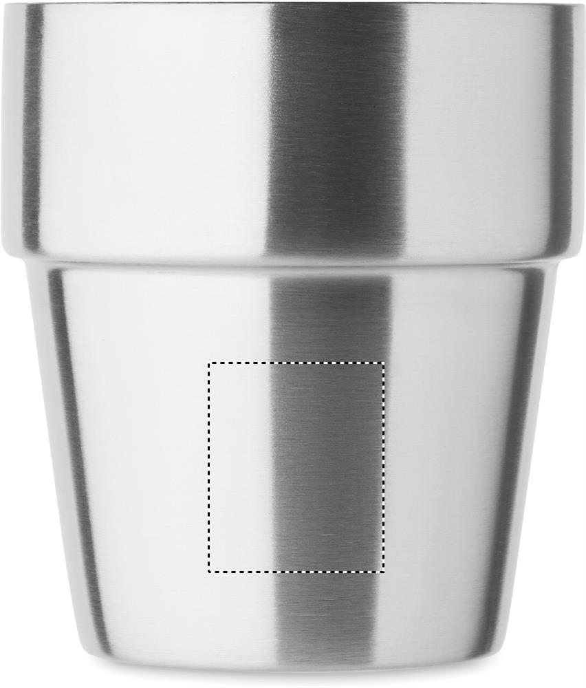 Doppelwandiger Becher aus recyceltem Edelstahl (90% recycelter Edelstahl und 10% Edelstahl). Stapelbar. Füllmenge: 250 ml.