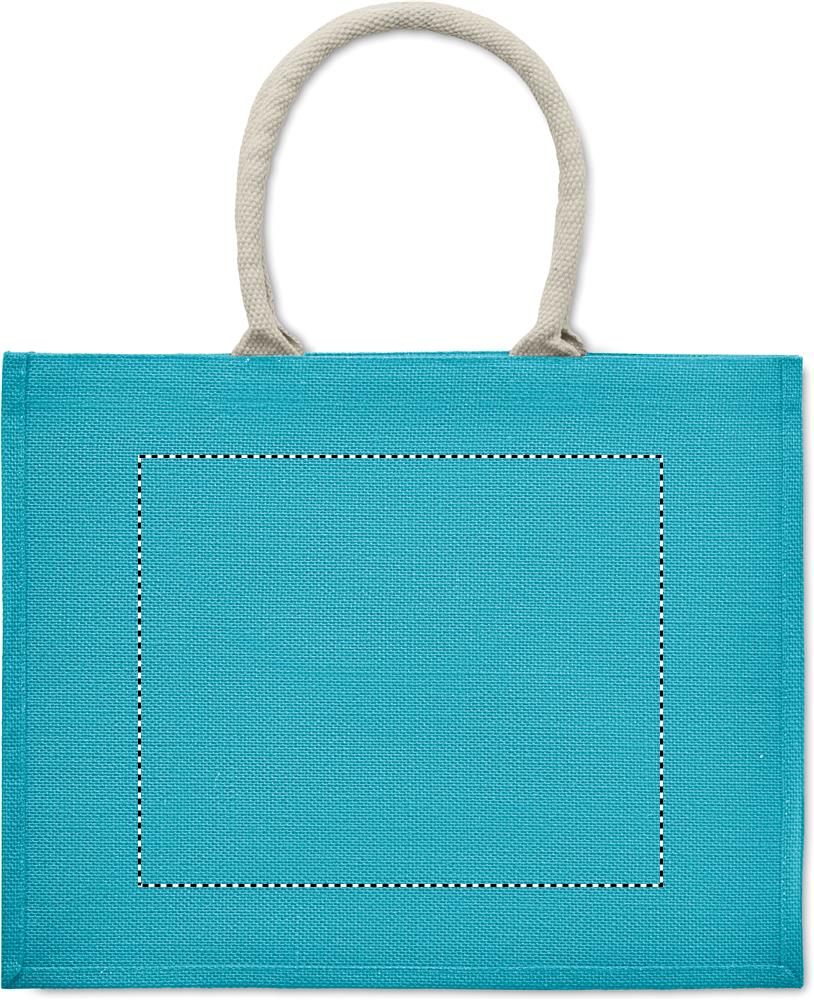 Einkaufs- oder Strandtasche aus laminierter Jute. Kurze Tragegriffe aus Baumwolle.