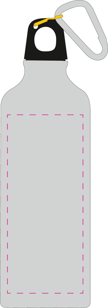 Sportflasche aus Aluminium mit dichtem Schraubverschluss und Schlüsselring mit Karabiner. Füllmenge: 0,6 Liter.