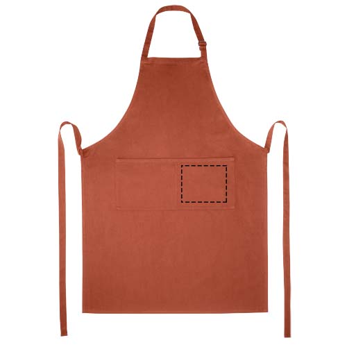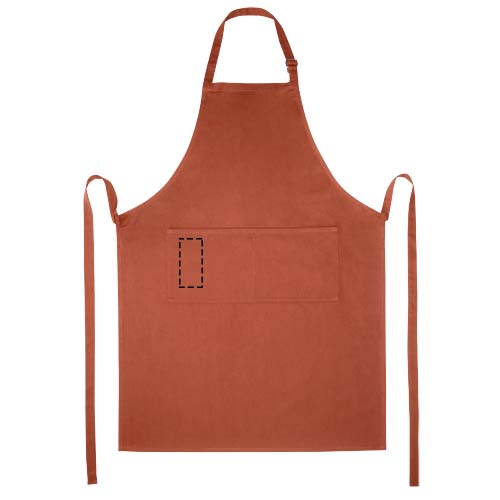 Mit der Schürze Andrea ist es einfach, schöne Kleidung beim Kochen zu schützen. Die Schürze besteht aus 240 g/m² Twill (65 % Polyester und 35 % Baumwolle), wodurch sie robust und strapazierfähig, aber dennoch weich und angenehm zu tragen ist. In den beiden Fronttaschen lassen sich Küchenutensilien schnell und einfach verstauen. Die Schürze ist mit einer Schnalle im Nacken und einem Schnürverschluss auf dem Rücken verstellbar, sodass sie für alle Größen geeignet ist. Verschiedene großformatige Druckoptionen für maximale Logopräsentation.