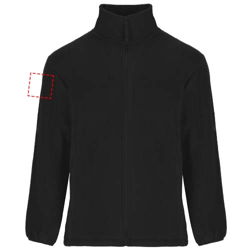 Fleecejacke mit gefüttertem Stehkragen und entsprechend verstärkten und verdeckten Nähten. Eingespritzter Reißverschluss mit passendem Zipper aus Stoff. Seitentaschen. Ärmelbündchen mit Gummizug. Unterer Saum mit seitlichem Reißverschluss. Herausnehmbares Etikett. Das Modell ist 185 cm groß und trägt Größe M.