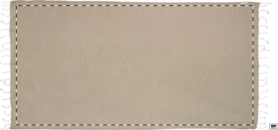 Pareo-Strandtuch. Material: 70 % recycelter Baumwolle und 30 % RPET-Polyester (180 g/m²).