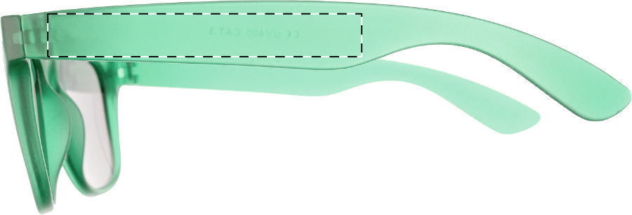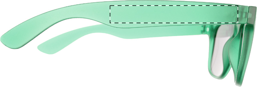 Sonnenbrille aus Kunststoff mit durchscheinendem Rahmen, verspiegelten Gläsern und UV-400-Schutz.