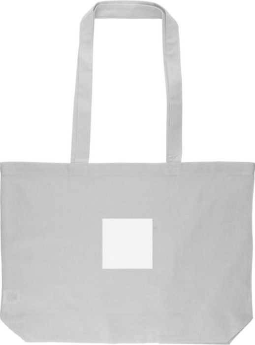 Einkaufstasche aus Baumwolle (140 g/m²) in Naturfarbe. Größe 48 × 34 × 10 cm mit 70 cm langen Henkeln (2,5 cm breit). Dieses Produkt ist OEKO-TEX® STANDARD 100 zertifiziert.