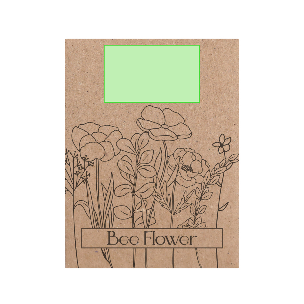 Umschlag aus Kraftpapier mit einer Mischung aus Wildblumensamen, ideal als ökologisches Geschenk, das direkte Aussaat ermöglicht.