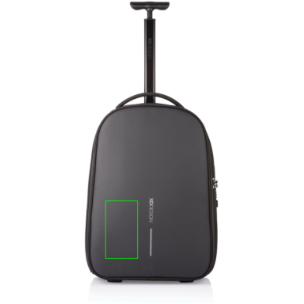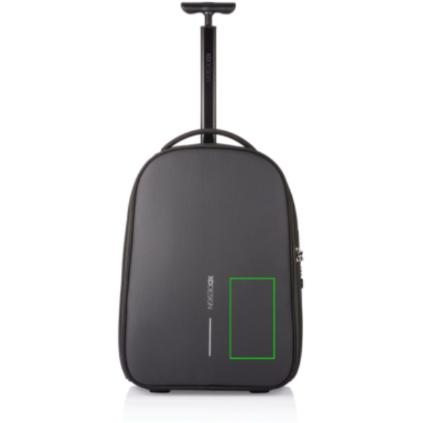 Komfortabel wie ein Trolley und praktisch wie ein Rucksack. Der Bobby Rucksack Trolley ist der perfekte Begleiter für Kurztrips oder tägliches pendeln. Verwandeln Sie den Rucksack ganz einfach in einen Trolley, indem Sie die Schultergurte in das Rückenfach stecken und die Trolleystange ausziehen. Wenn er dann wieder als Rucksack genutzt werden verstauen sie die Trolleystange sowie die Räder, so dass auch ihr Rücken sauber bleibt. All die bekannten Bobby Anti-Diebstahl-Features hat auch der Bobby Rucksack Trolley kombiniert mit einem TSA Schloß. Im Inneren finden sich verschiedene Fächer, auch eines für Ihren 17" Laptop. Zudem ein Fach für Ihre Flasche sowie ein RFID geschütztes Fach. Hergestellt aus recyceltem PET mit AWARE™ Tracer. In Handgepäcksgröße. Registered design®
