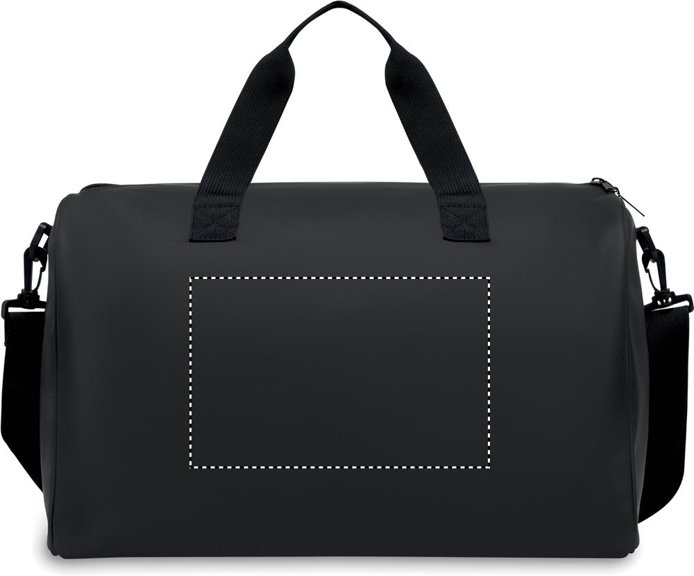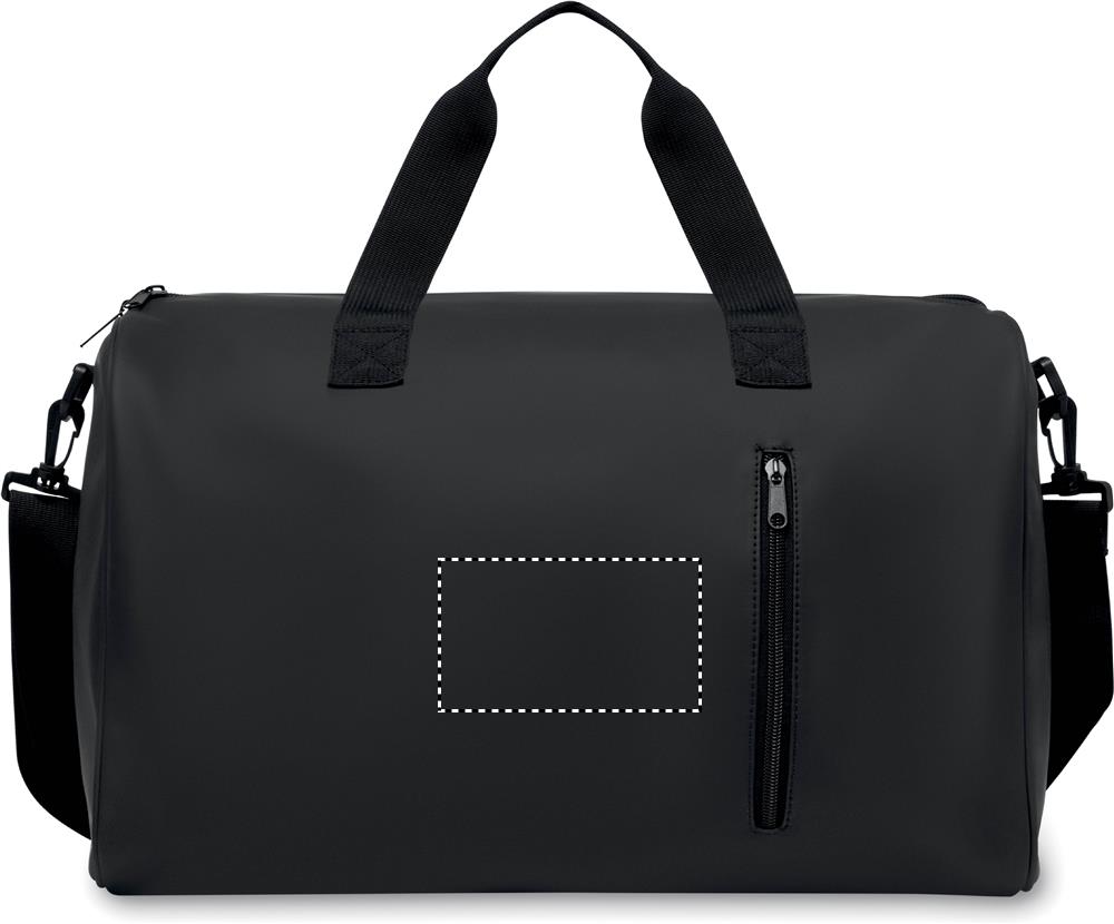 Sport- oder Reisetasche aus weichem PU mit schaumstoffverstärktem Boden. Hauptfach und Fronttasche mit Reißverschluss. Futter aus 210D RPET-Polyester. 2 Griffe und verstellbarer, abnehmbarer Schultergurt.
