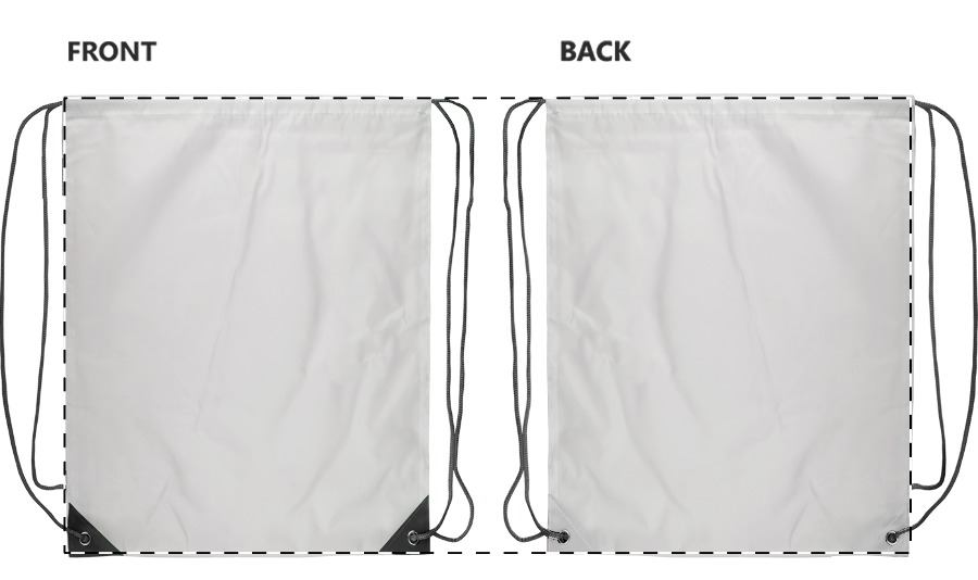 Individueller Turnbeutel mit verstärkten Ecken aus Kunstleder und farblich angepassten Zugkordeln, Material: 190T Polyester. Der Preis ist inkl. vollflächigem Sublimationsdruck. Mindestmenge: 25 Stk.