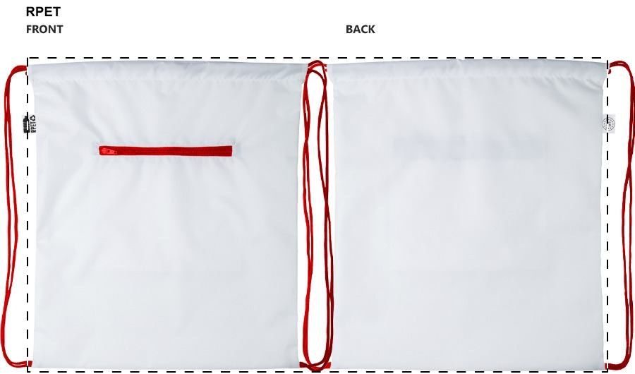 Individueller Turnbeutel mit Kordelzug und Fach mit RFID-Schutz mit Reißverschluss, Material: 190T RPET-Polyester. Der Preis ist inkl. Sublimationsdruck und RPET-Label. Mindestmenge: 25 Stk.