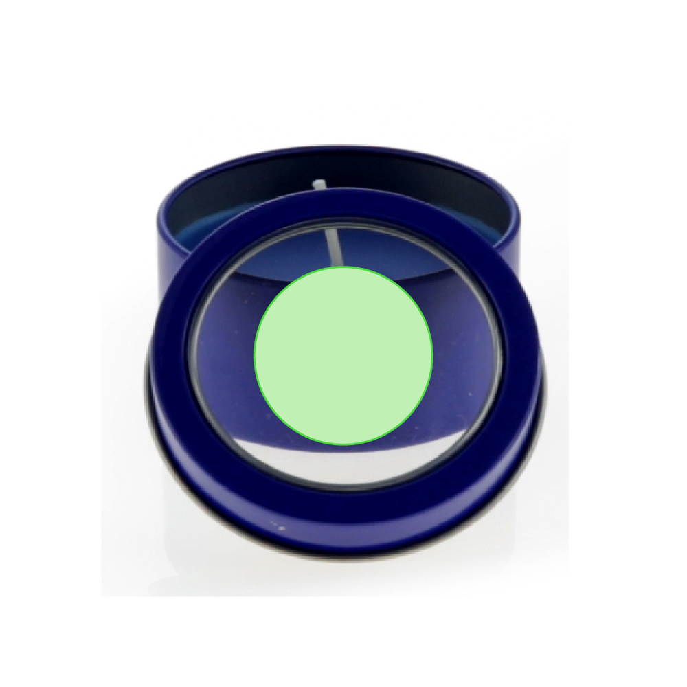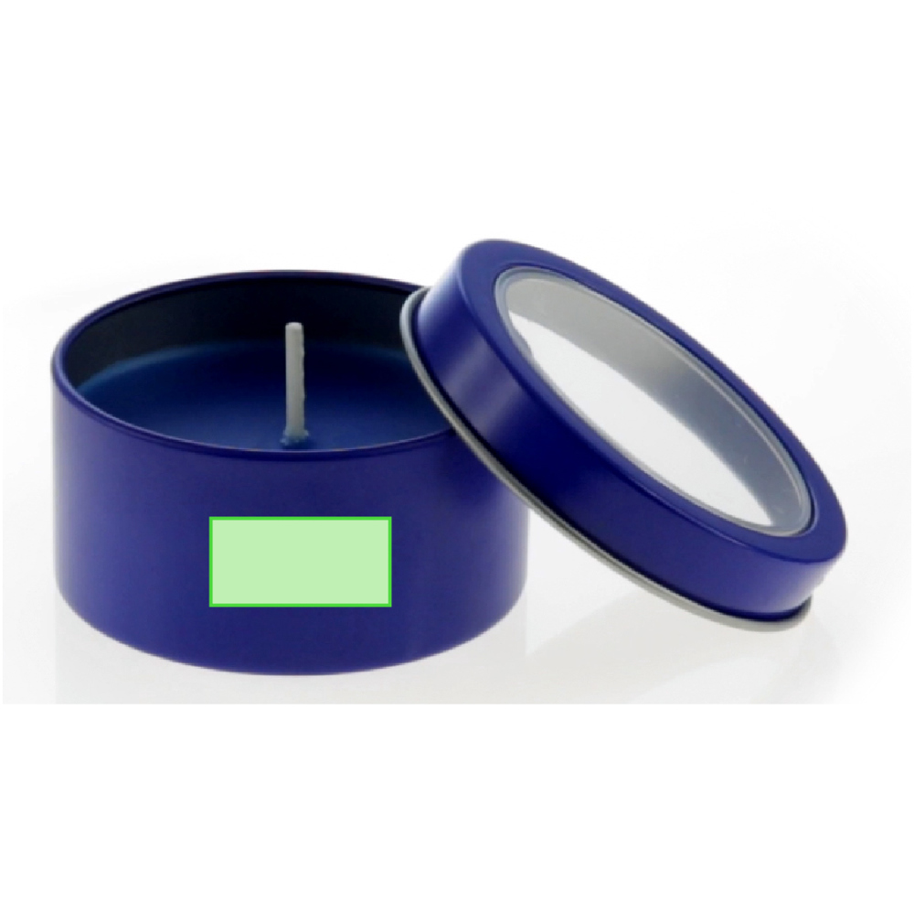 Aromakerze mit Vanilleduft. Präsentiert in einer originellen Metalldose in verschiedenen kräftigen Farben mit transparentem Fenster.