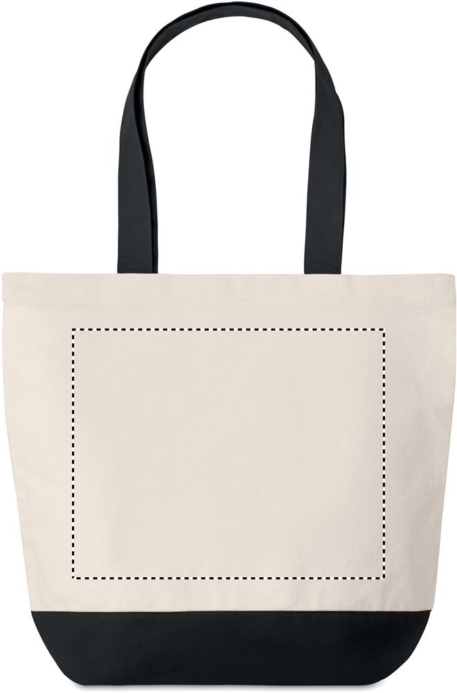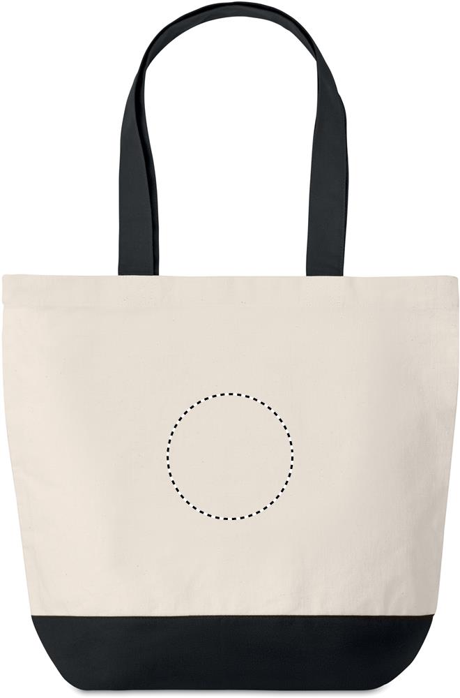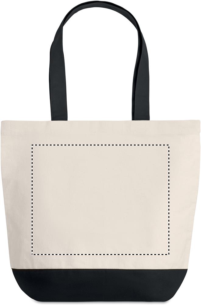 Shopping Tasche aus 280g/m² Canvas. Farbig abgesetzter Boden und passende Tragegriffe. Kleines Innenfach.