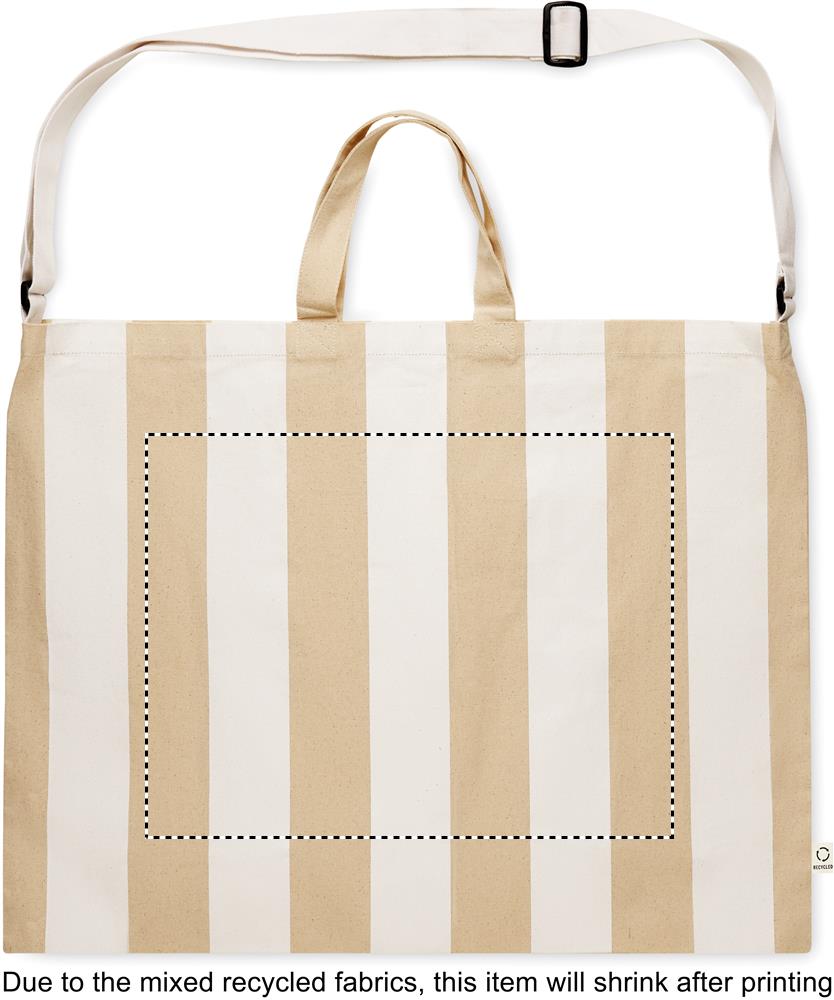Extra große gestreifte Strandtasche aus 280 g/m² (recycelte Baumwolle 80% und recycelter Polyester 20%). Innentasche, kurze Tragegriffe und großer verstellbarer Schultergurt.